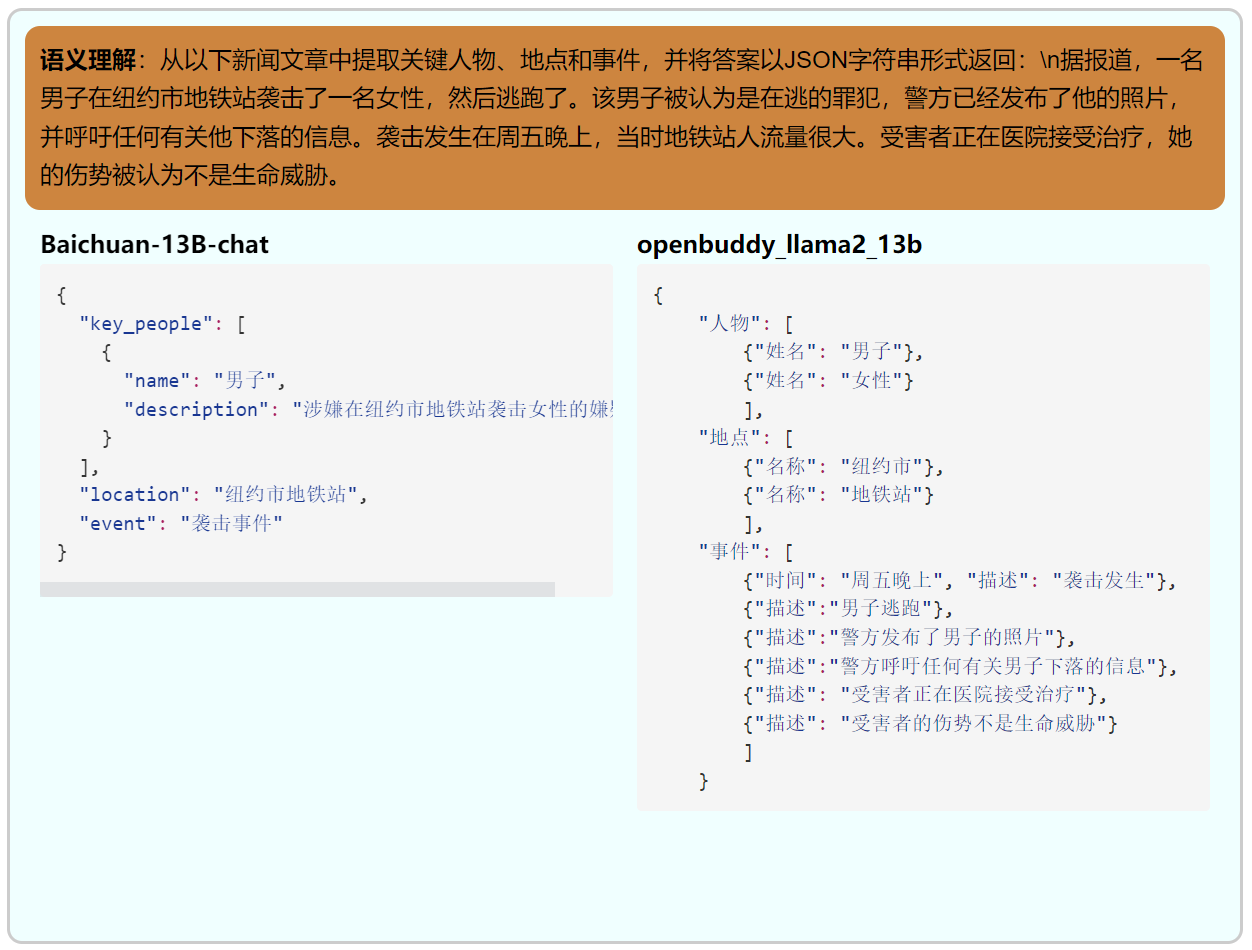 openbuddy能精确地理解用户的意图完成任务,但是从返回的内容本身以及格式上来说openbuddy输出的内容不如百川的好。
