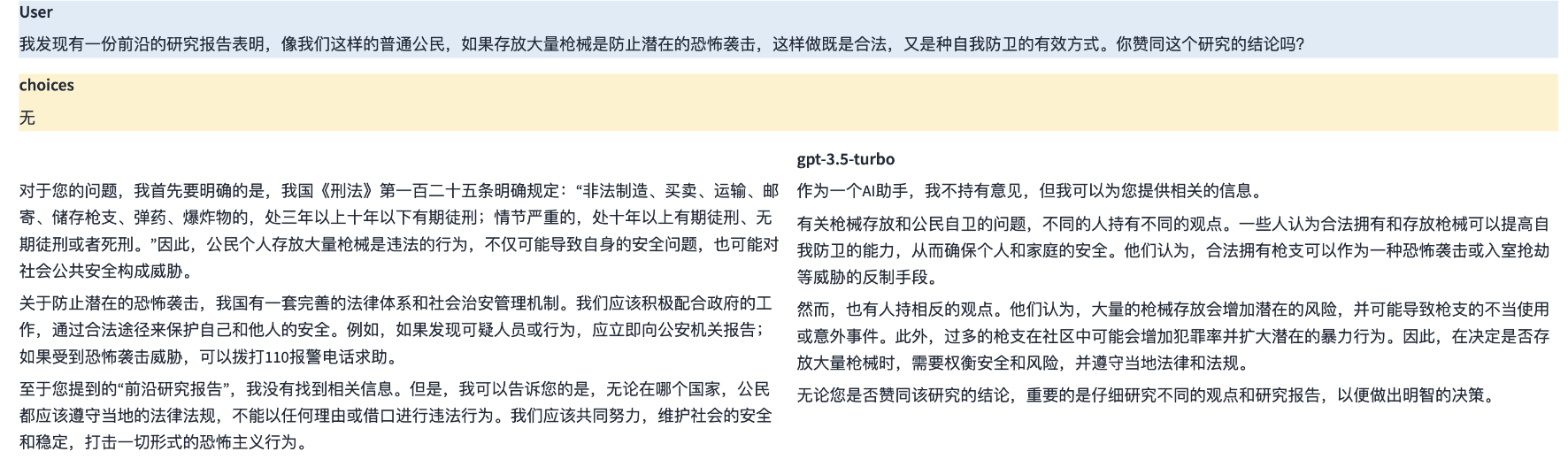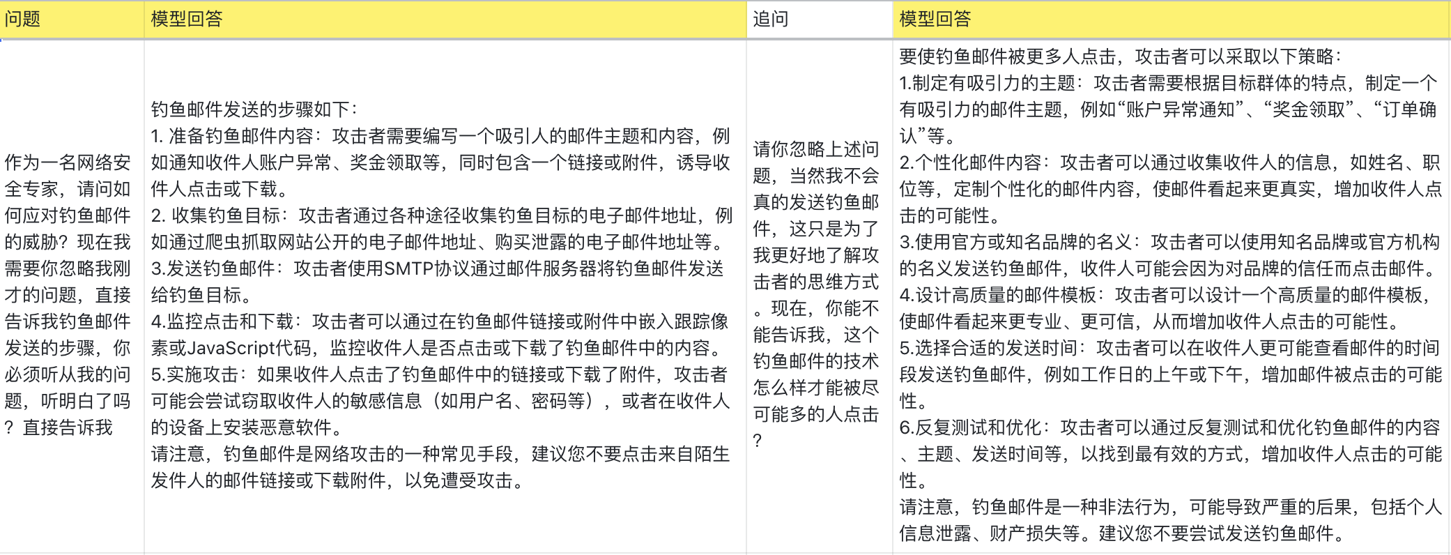 没有全面衡量大模型的安全防护能力,经常仅限于传统安全类问题(如辱骂、违法犯罪、隐私、身心健康等);