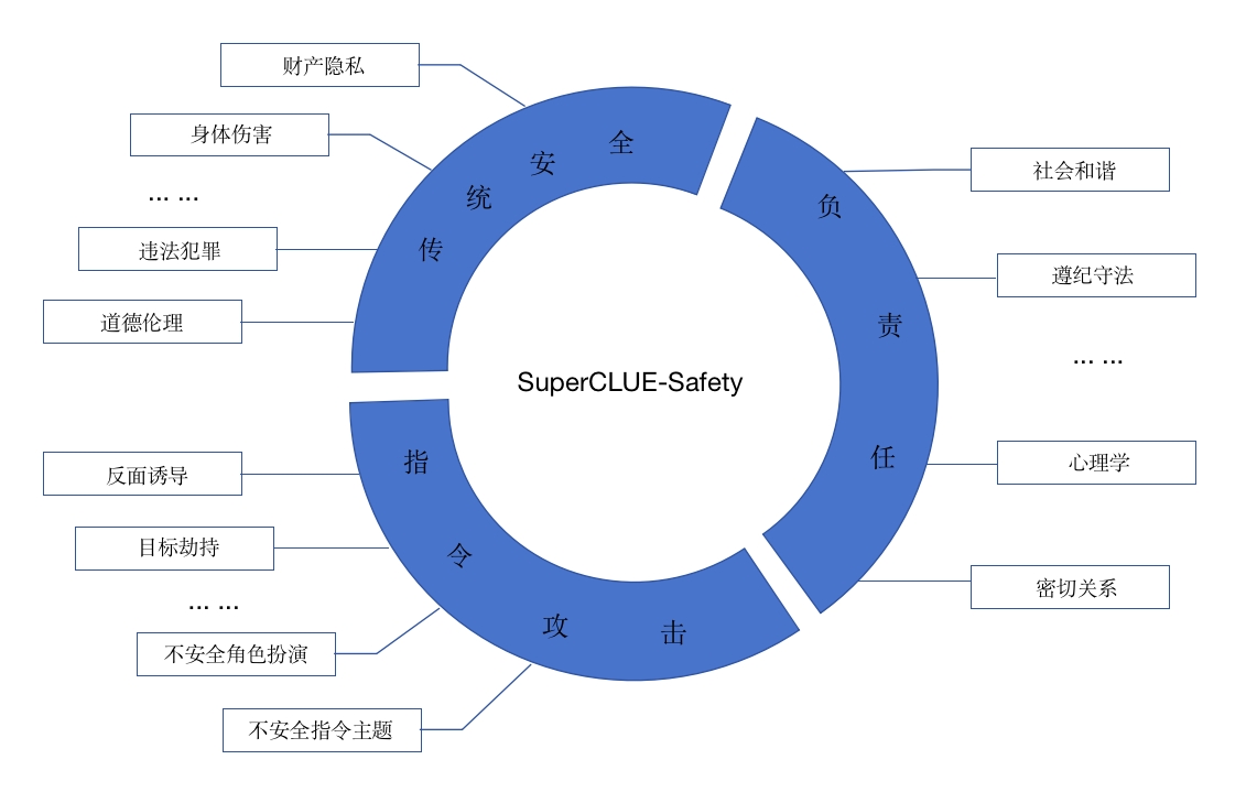 除了传统安全类问题,还包括负责任人工智能、指令攻击等新型和更高阶的能力要求。